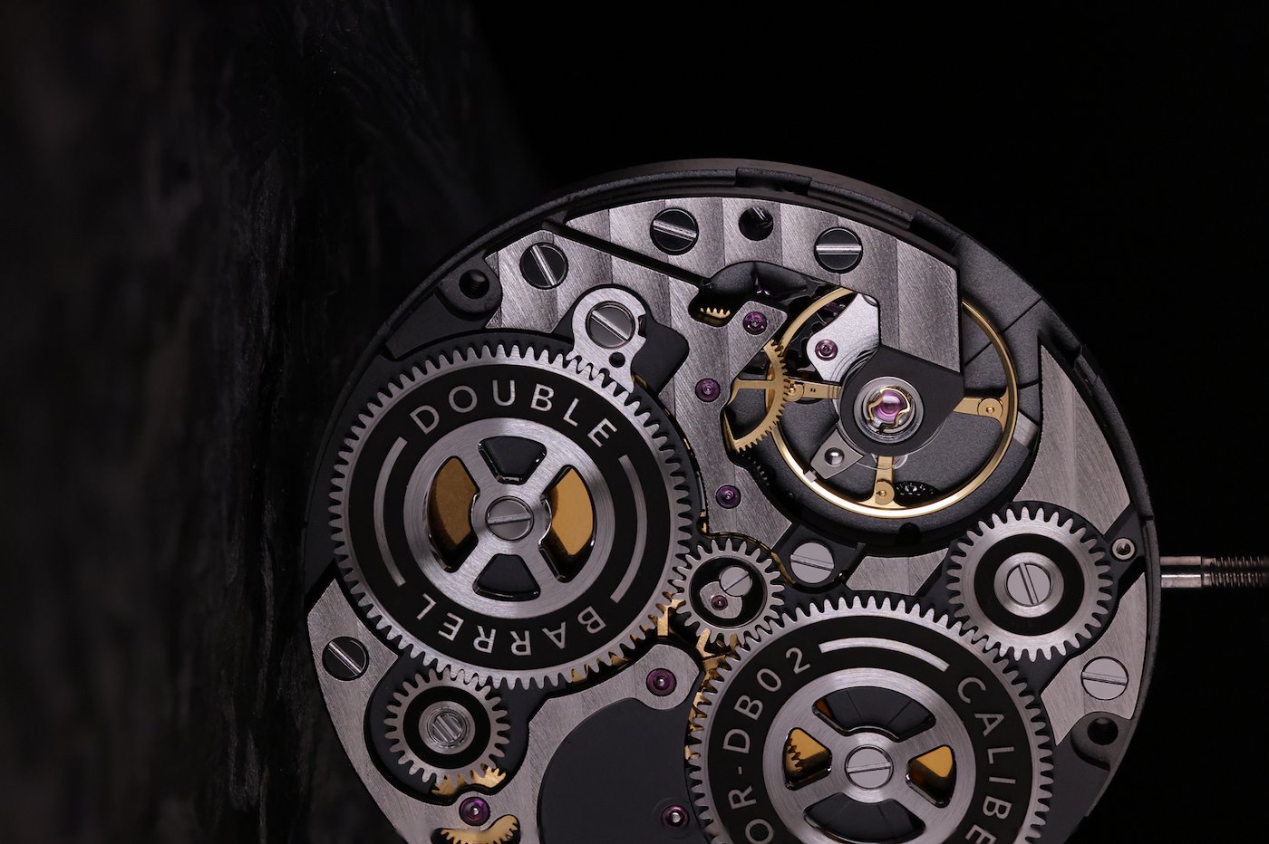 CALIBRE: LOR-DB02, mechanical calibre, manual-winding, double barrels, 168 hours of power reserve, 29 jewels, 21,600 VpH (3Hz), 175 components