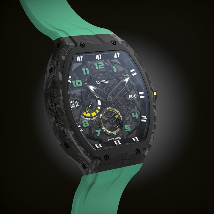 Founded in 2018, Lorige merges haute horlogerie with motorsport by integrating genuine racing materials. With the new BL-Evolution “Hyperblack” and “Bleu Asphalte,” the brand pushes this concept even further. Crafted from carbon/carbon brake discs from Aston Martin Valkyrie hypercars, these limited editions of 50 pieces capture the adrenaline of the track. The asphalt-textured dial and the LOR-DB double-barrel calibre offering 168 hours of power reserve illustrate a perfect fusion of extreme performance, innovation and exclusivity.
