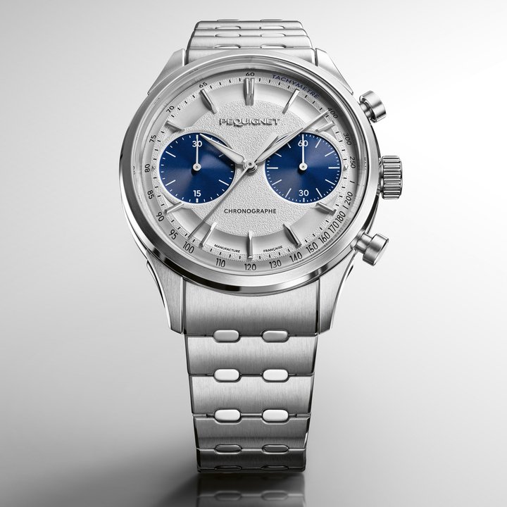 Pequignet reinforces its manufacture status with the Royale Paris Chrono, its very first chronograph. Introduced in 2026, this model marks a key milestone in the brand’s revival. Equipped with the new Calibre Initial Chrono®, developed in-house with a Swiss partner, it combines precision, robustness and finesse. Its textured dial, structured with a double groove and azuré sub-counters, delivers a strong visual identity. With its cam-driven architecture and refined finishes, the Royale Paris Chrono embodies a contemporary vision of the chronograph, merging French watchmaking tradition with technical innovation.