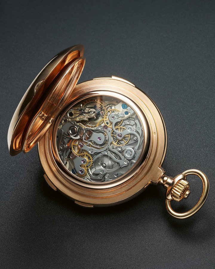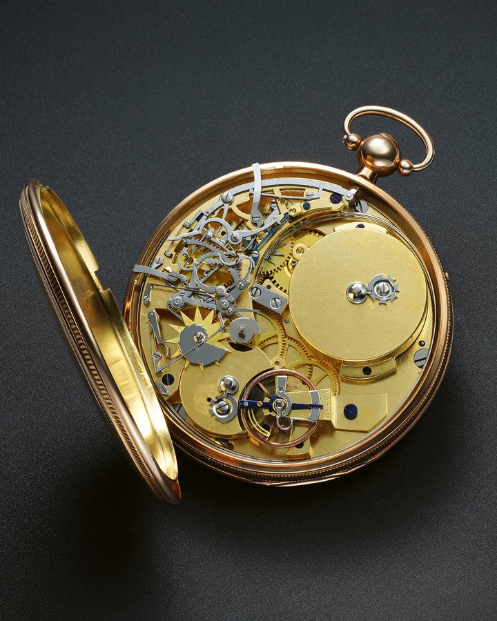 Johan Christian Friedrich Gutkaes (1785-1845), no. 9, ca. 1820. Quarter repeating and quarter striking grande sonnerie clock watch. 20k pink gold case. Ferdinand Adolf Lange’s father-in-law, Gutkaes served as clockmaker to the Court of Saxony in Dresden and had a considerable influence on the birth of the Glashütte watch industry.