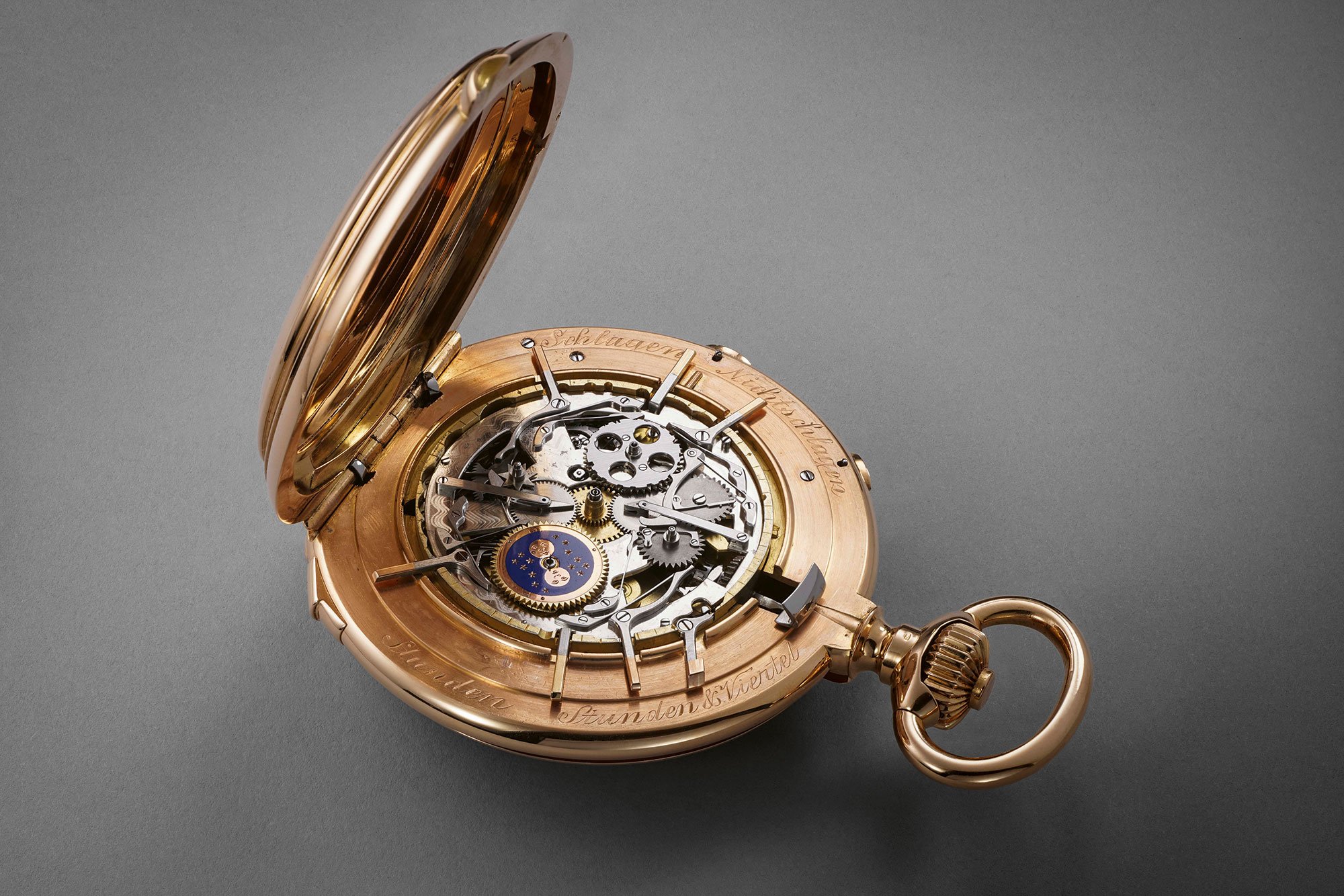 Just as Ferdinand Adolf Lange’s influence extended beyond his own brand to make Glashütte a globally renowned centre for watchmaking, Dr Crott’s collection includes watches by manufacturers other than A. Lange & Söhne. “So many times I have missed out on the brand’s grandes complications. Fortunately I have been able to acquire sometimes even more complicated models by Union Glashütte, which employed some of the town’s finest watchmakers in the early twentieth century.” The exhibition shows one of the six grandes complications ever made by Union Glashütte: a minute-repeating grande and petite sonnerie with split-seconds chronograph, 30-minute register, flying 1/5th second, perpetual calendar and moon phases, from 1902.