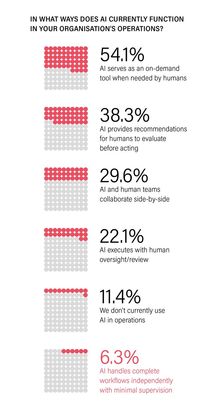 At the opposite end of the spectrum, 11% of respondents state that AI is not used in their daily operations at all