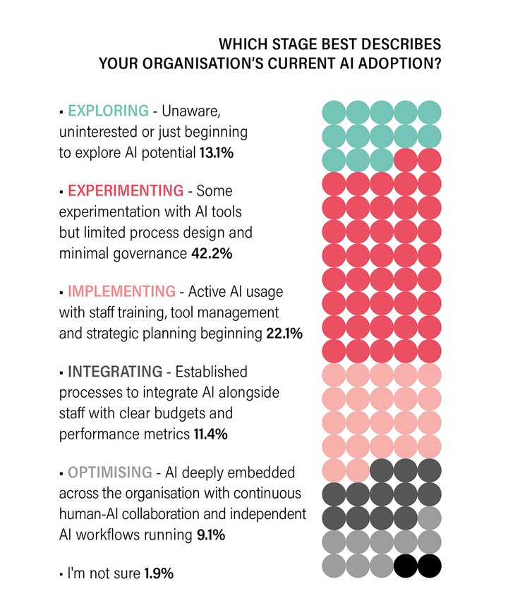 Furthermore, the “lack of employee time to upskill” is symptomatic of an industry that runs on the relentless pace of collections, events and immediate client demands. This creates a critical bottleneck: organisations lack the internal expertise, face cultural resistance from teams who fear AI’s impact on their craft, and are too operationally focused to invest the time in strategic learning.