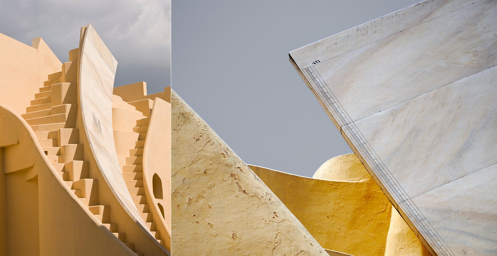 This poetic, even metaphysical dimension can be felt immediately on entering the Jantar Mantar in Jaipur. This monumental and magnificent “machine for calculating” solar time, lunar time, the equinoxes, the motions of the planets, the movement of the constellations... is a collection of sixteen instruments in masonry and six in metal. Together they form a highly sophisticated and precise astronomical observatory: a Giorgio de Chirico painting come to life.