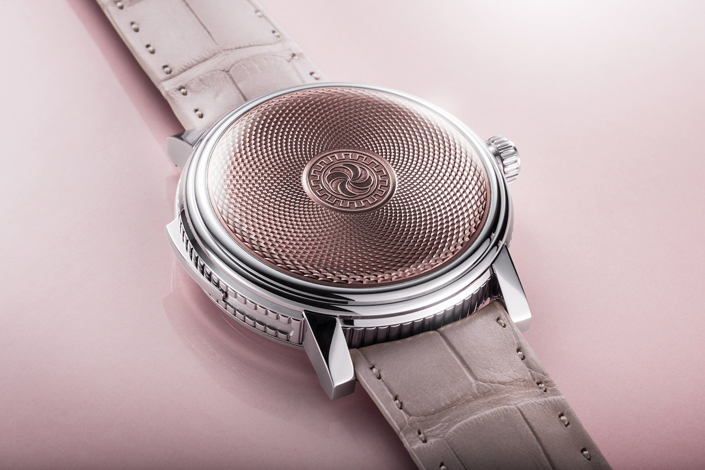 - Upturning convention, the L’Armoriale minute repeater reserves its front for a hand-guilloché motif under translucent Grand Feu enamel. The time display is on the reverse, for only the wearer to see, where rose gold hands circle a simple time scale around the periphery of a Guatemalan white jade disc.