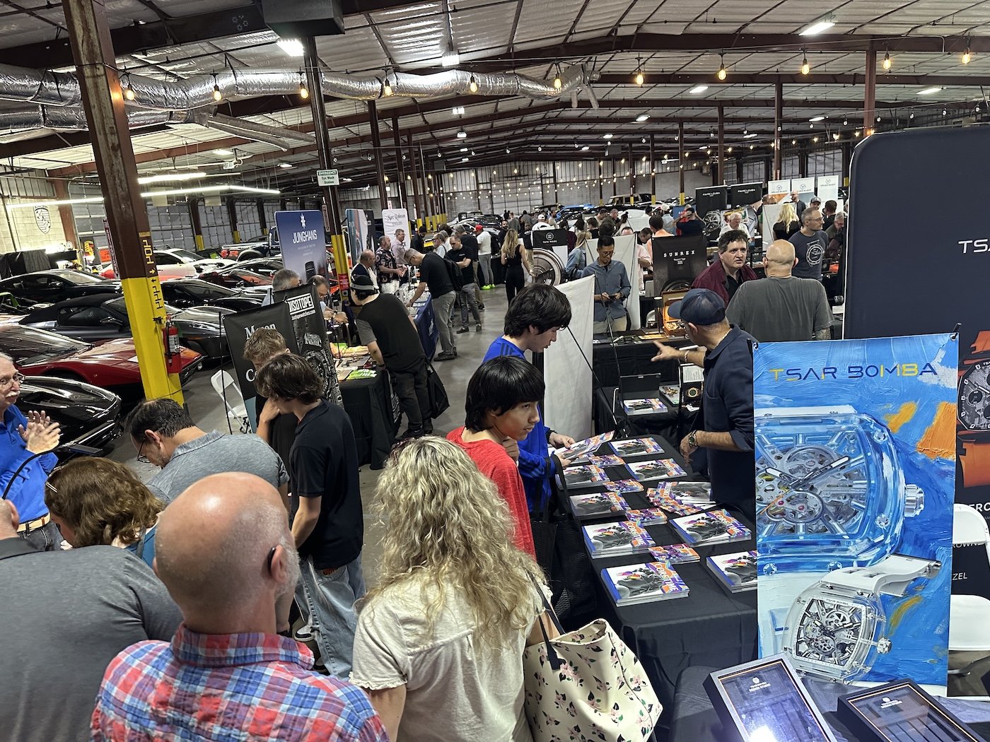 The Petrol Lounge venue elevated the event beyond a traditional watch show. Attendees explored timepieces alongside a Ferrari LaFerrari, Ferrari F40 and F50, multiple Ford GT40s, Bugattis, McLarens, and an extensive array of Porsches, Lotuses, and classic cars.