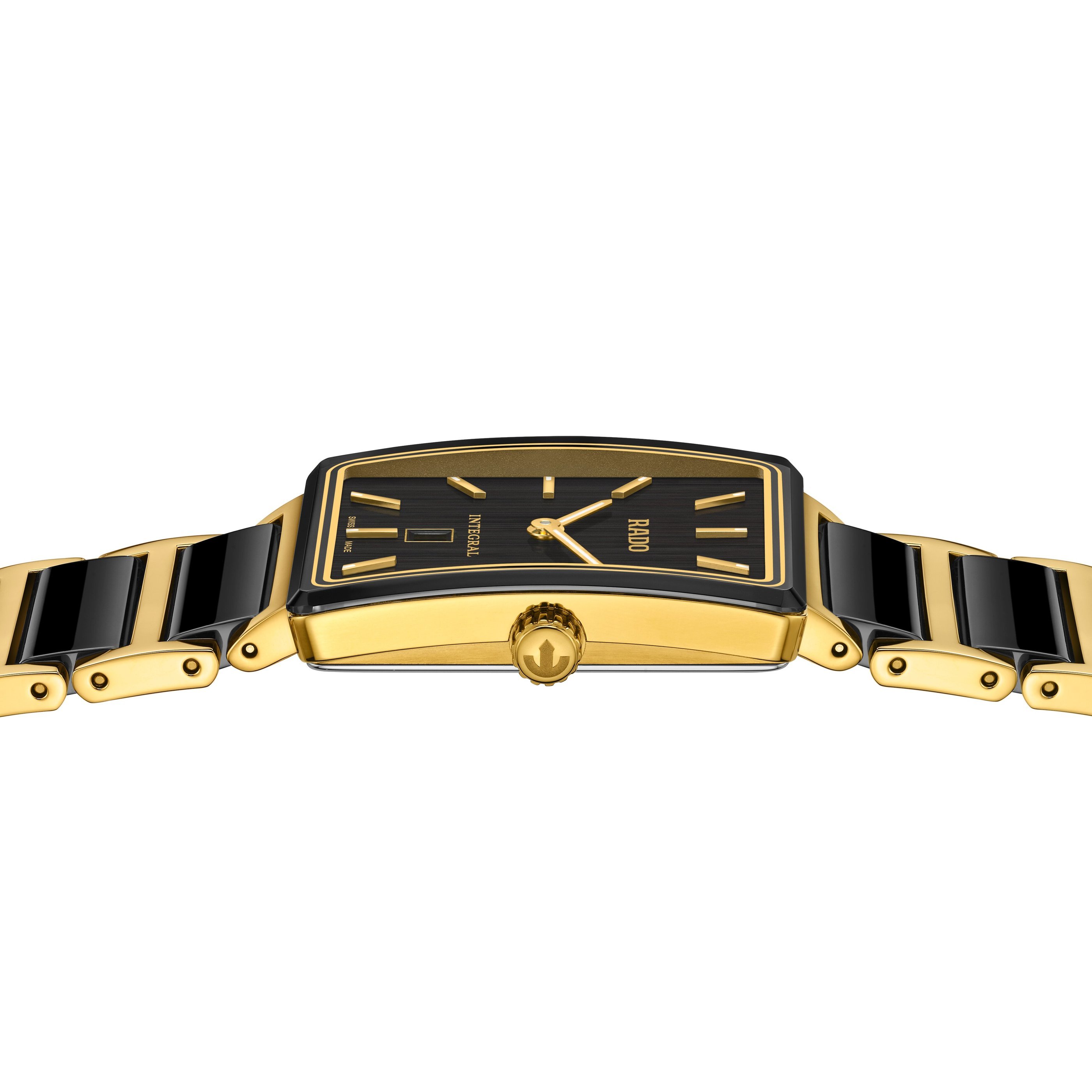 Remaining faithful to the original design while introducing refined updates, the timepiece features a bracelet that pairs polished black high‑tech ceramic middle links with yellow gold‑coloured components. Its square, slim‑profile case is fitted with an edge‑to‑edge bevelled sapphire crystal, enhanced with precise metallisation. Powered by the Rado R279 calibre quartz movement with PreciDrive for unwavering accuracy, it also bears a special case‑back engraving: SINCE 1986, ANNIVERSARY EDITION.