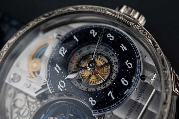 Each case is individually engraved by a specialist artisan, making every piece unique. The interlaced motifs, bespoke “Henri Grandjean” typography, and the design of the case, select movement components and crown form a discreet yet unmistakable patrimonial signature.