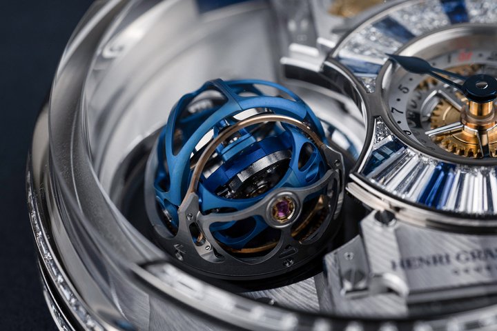 At the heart of Magician lies a movement entirely developed and assembled by the Maison, featuring a mysterious triple-axis tourbillon built around an unprecedented horological architecture. Deprived of immediately visible anchoring points, the regulating organ appears to float in space, rotating simultaneously along three distinct axes and challenging conventional readings of mechanical motion.