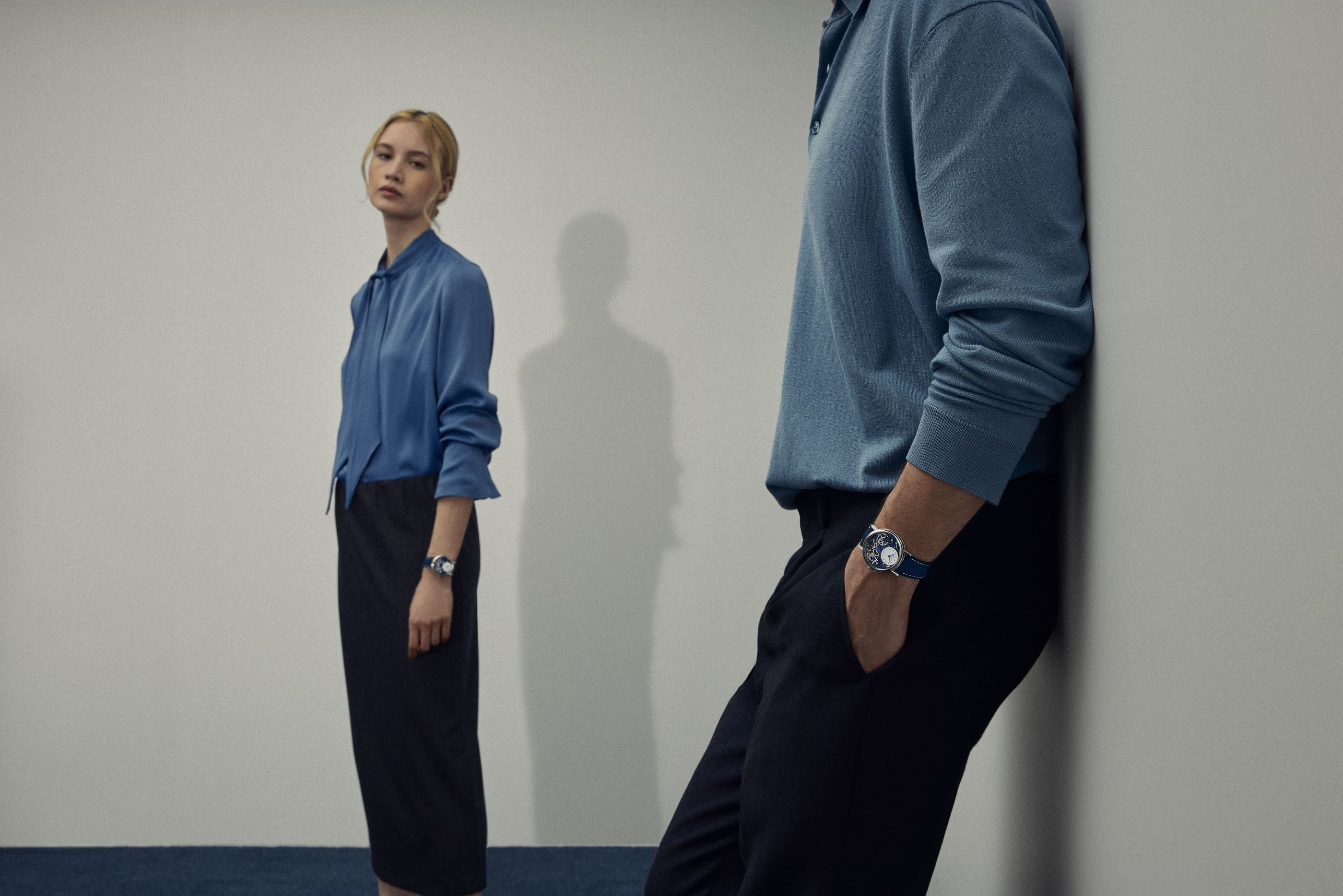 The main dial displays Local Time, while the subdial at 8 o’clock displays Home Time. A discreet day/night indicator at 10 o’clock completes the display, positioned near the crown used to set the complication (by one-hour increments in either direction).